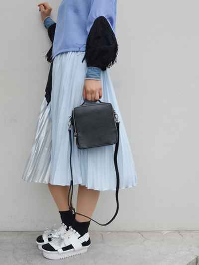 とくにコロンとしたサイズ感のバッグなのに“可愛らしくて甘い” ではなく“こなれててモード”な雰囲気にしてくれるところがこのバッグの魅力です。
