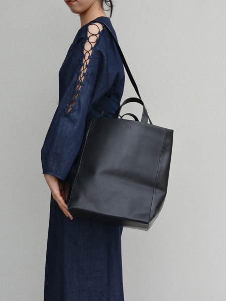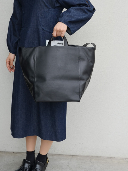 柔らかいブラックレザーで造られたAetaのバッグは店頭でも実際に持ってみてその軽さに驚かれる方が多いくらい本当に軽くてびっくりします。