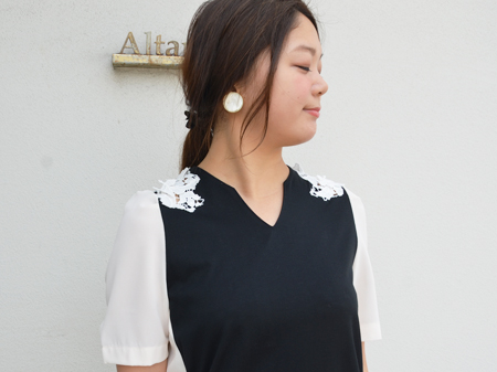 つけ襟をしているようなデザインが、シンプルになりすぎずポイントになりますね。