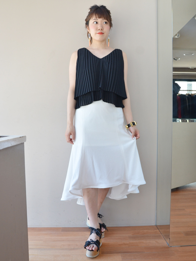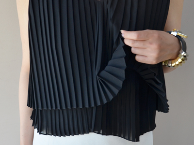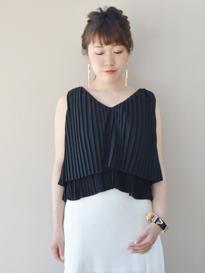 綺麗なプリーツの、レイヤードノースリーブトップス。