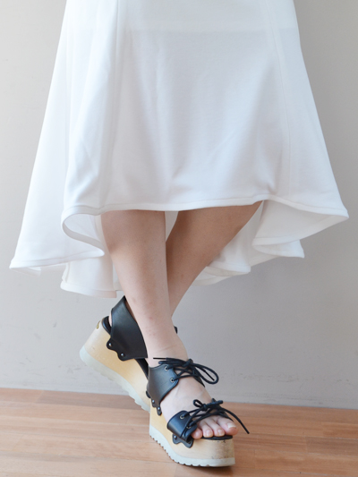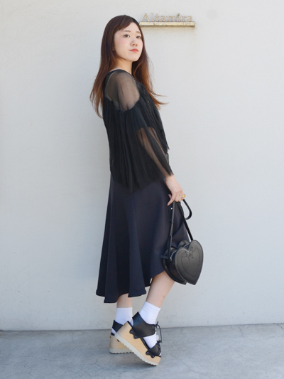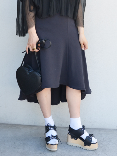 WHITEよりも、モード感が増すBLACKのアシンメトリースカート。