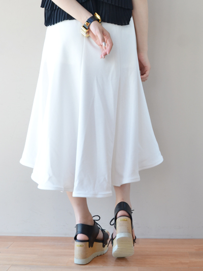 シルエットが崩れない、しっかりと厚みのあるアシンメトリースカート。