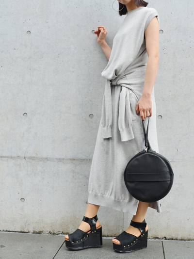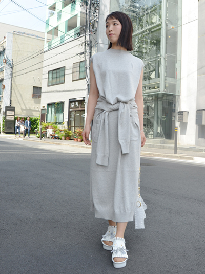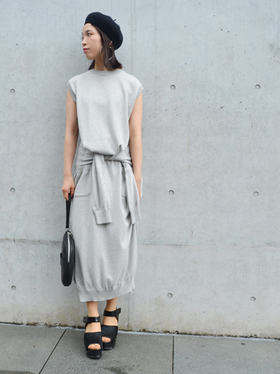 写真ではサンダルと合わせているので、ウエストできつめに結んでブラウジングしています。