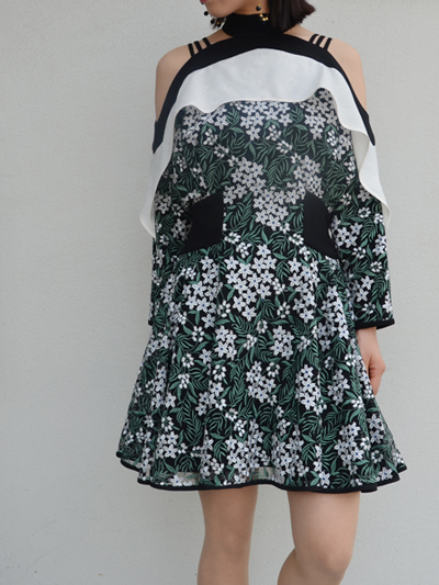 【mame】Tulle Embroidered Open Shoulder Dress : by mayumi
