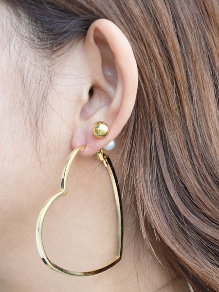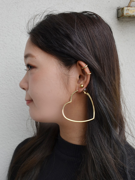 くり抜かれたハート型が可愛いこちらのピアスは細めのフレームで華奢なデザイン。