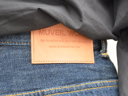 レザーパッチには MUVEIL WORKのロゴ入りです。