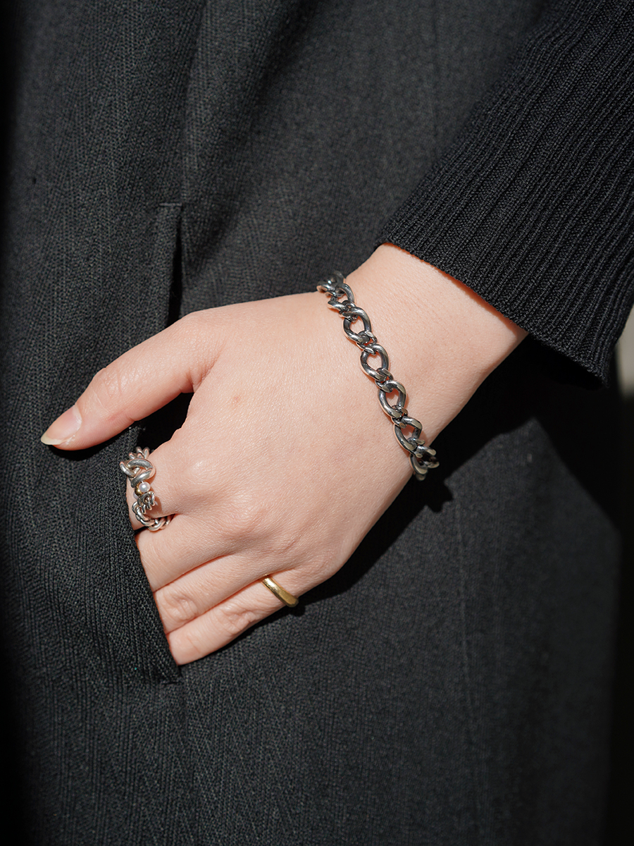 燻し加工が施されたシルバーチェーンのブレスレット。