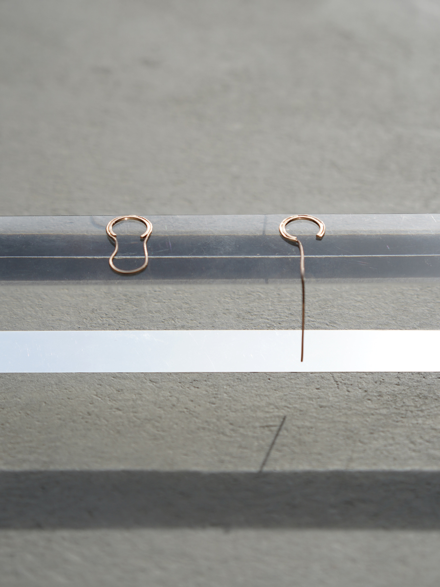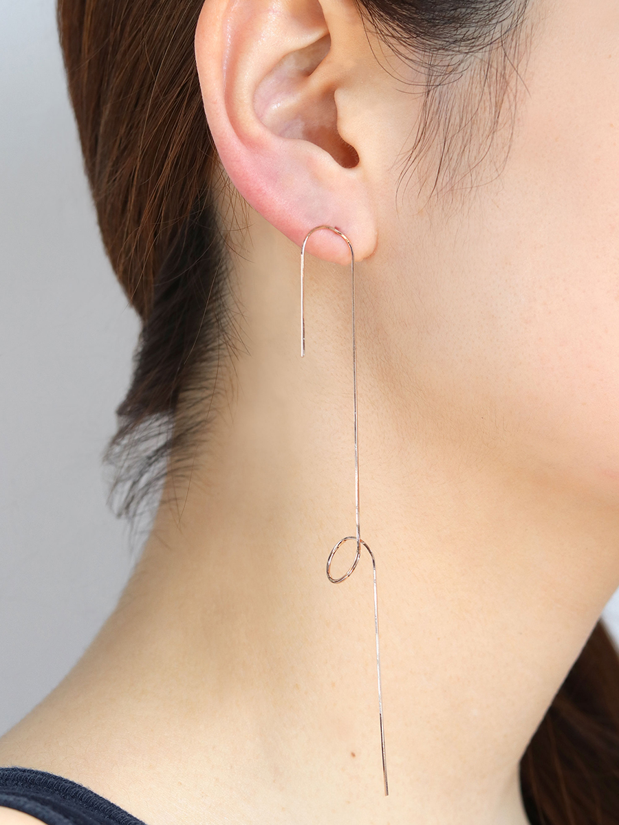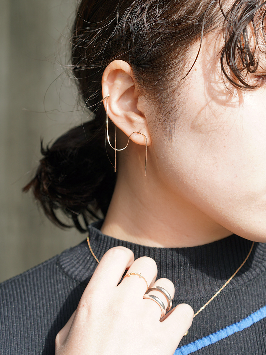 一見どうやって耳についてるのかわからないデザインのピアス。