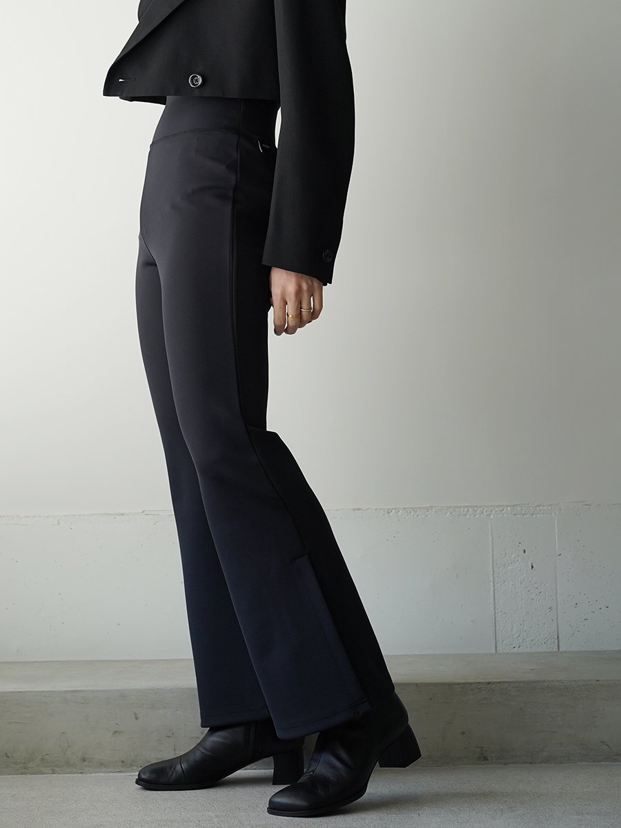 フィットするシルエットなのですが、生地にハリ感があるので、足のシルエットを拾いすぎないのが良いです。