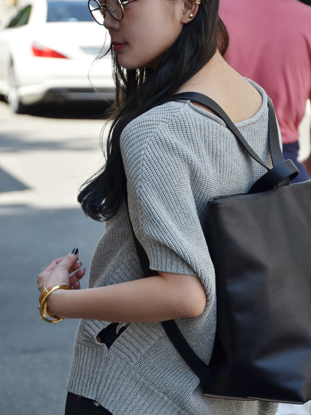 Ujohのゆるっとしたコットンニットにリュック。