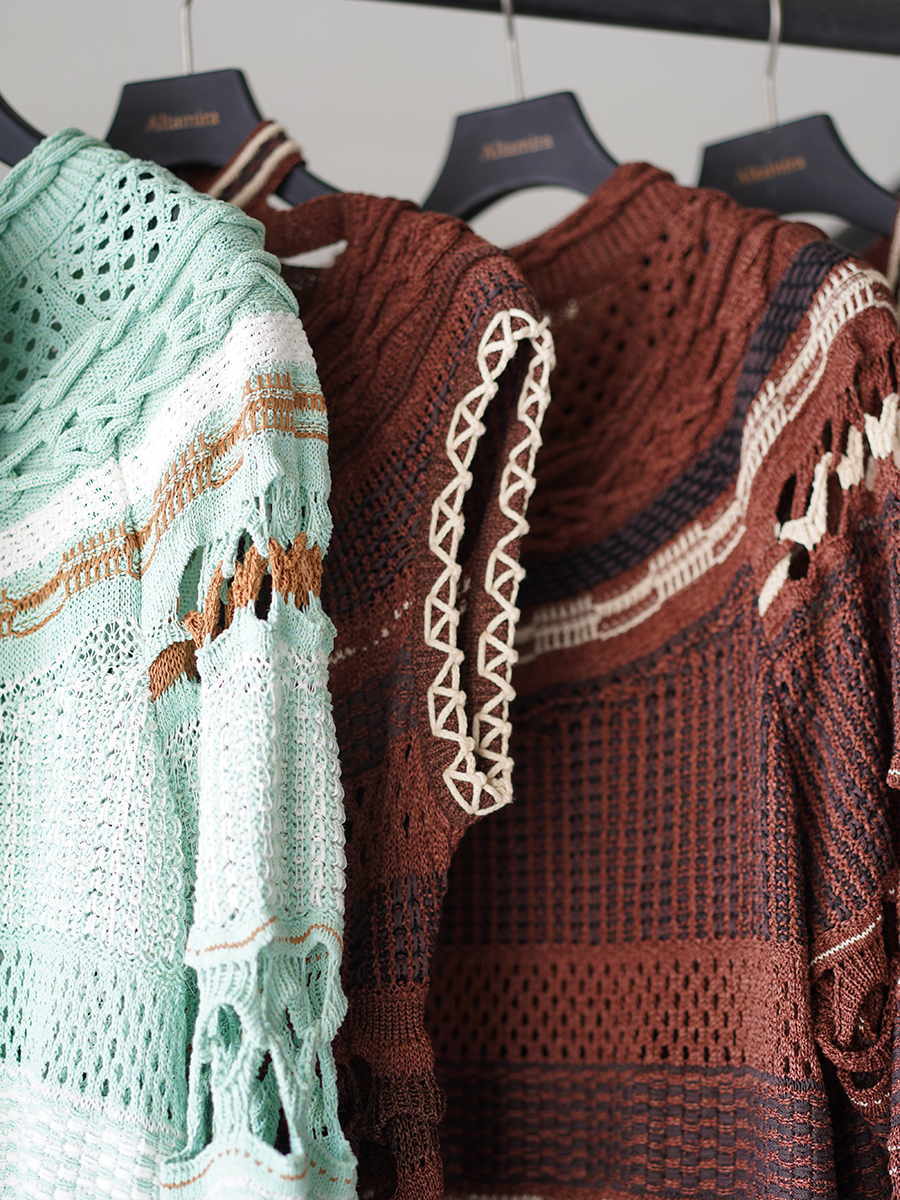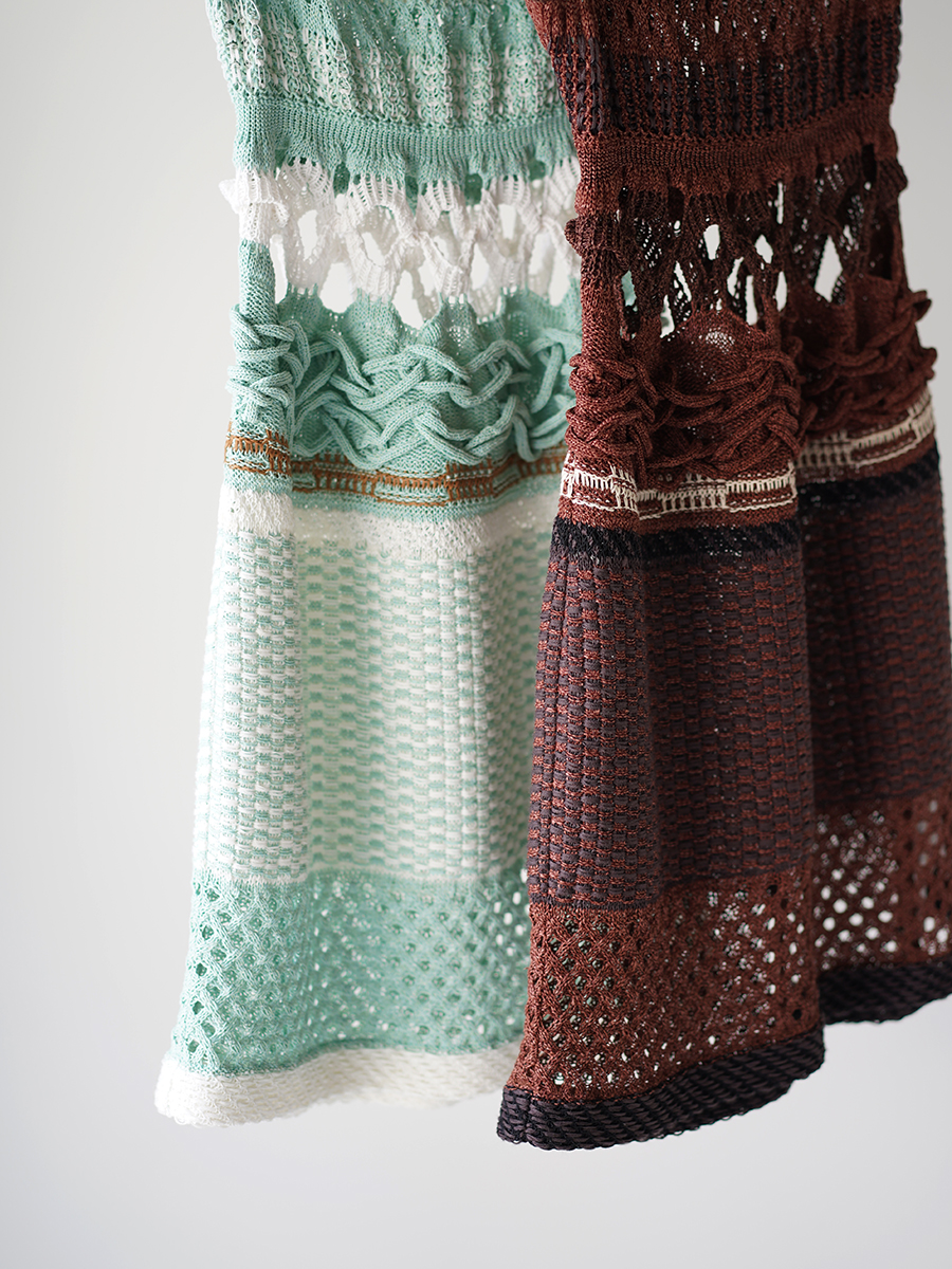 いくつもの素材が使われた複雑な編み地にうっとり。