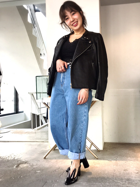 デニムの合わせてライダースを着るスタイルが人気でしたね^^
