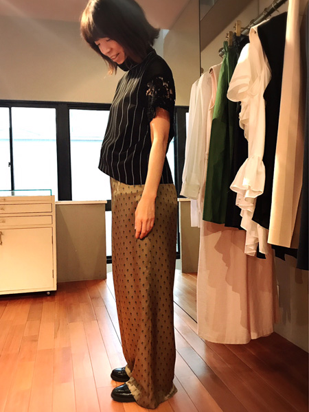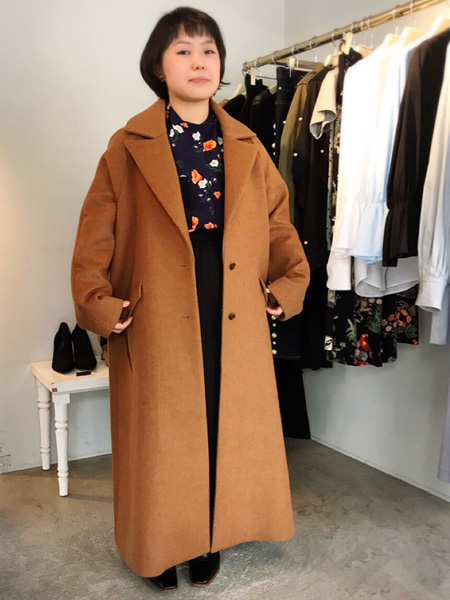 mullerは相変わらずアウター人気。今シーズンはロングコートをお勧めしていて素材違いでご用意しています。ボトムはマキシプリーツと花柄のパンツが予約集中しました。