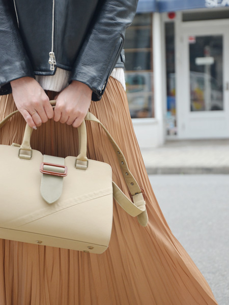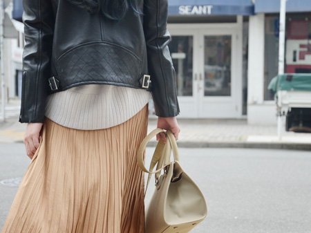 mullerのプリーツスカートもゴールドよりのベージュカラーで万能アイテムになりそう!!!