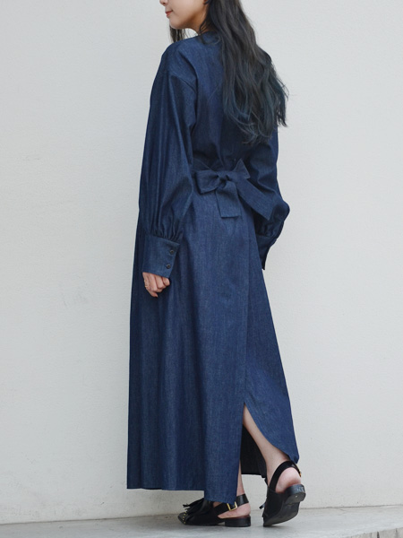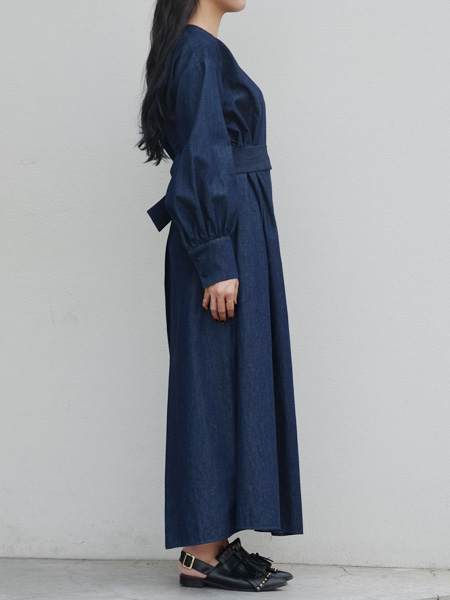 フェミニンなドレスをベーシックなデニム素材を使い普段も着やすくカジュアルダウンしたデザイン。