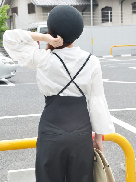 サイドに付いたリボンは通常ウエストでキュッと結んで穿いていただくのですが、サスペンダーのようにも使うことができるので2通りの着方をお楽しみいただけます!(言葉での説明が難しいので、これは店頭で実際にご覧いただきたいと思います!汗 )