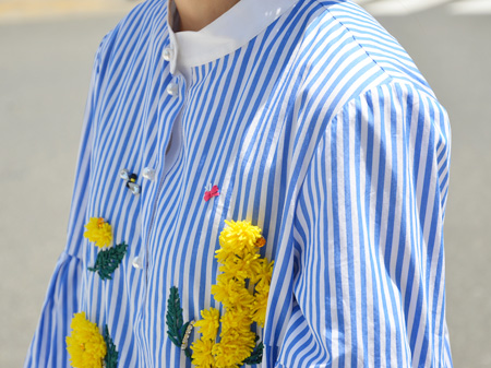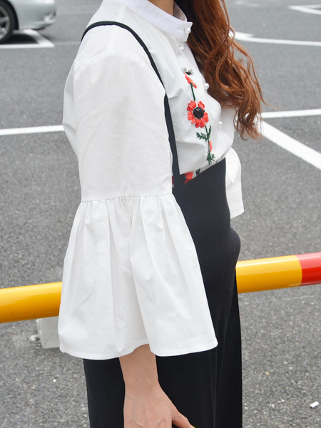 カスタムイベントに参加したいがゆえ、より刺繍やボタン付け替えをした時のオリジナル感がわかりやすいよう、まっさらな白地のブラウスを選びました!