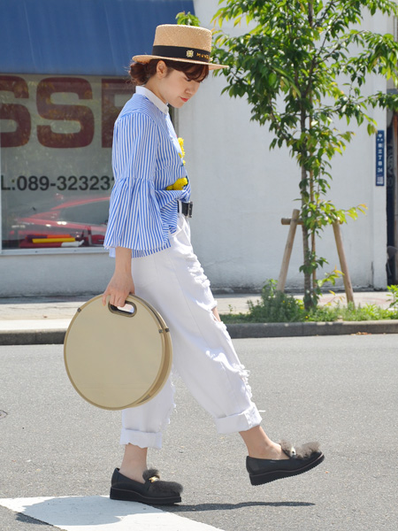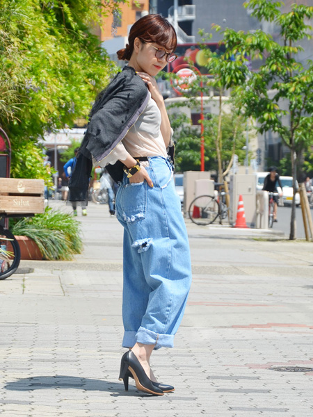 そして白のパンツ。なかなか私の中で苦手なジャンルだったのですが、PONYSTONEのダメージデニムはその苦手意識をぶっ壊してくれる優秀アイテム。