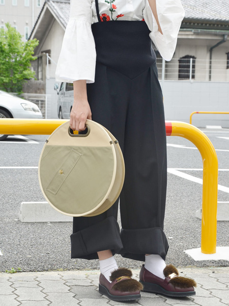 昨日紹介があったWaccoWaccoのバッグも、スタイリングに面白みをプラスしてくれる注目アイテム。解体したトレンチコートから生まれたバッグ。という今回のテーマもユニーク。