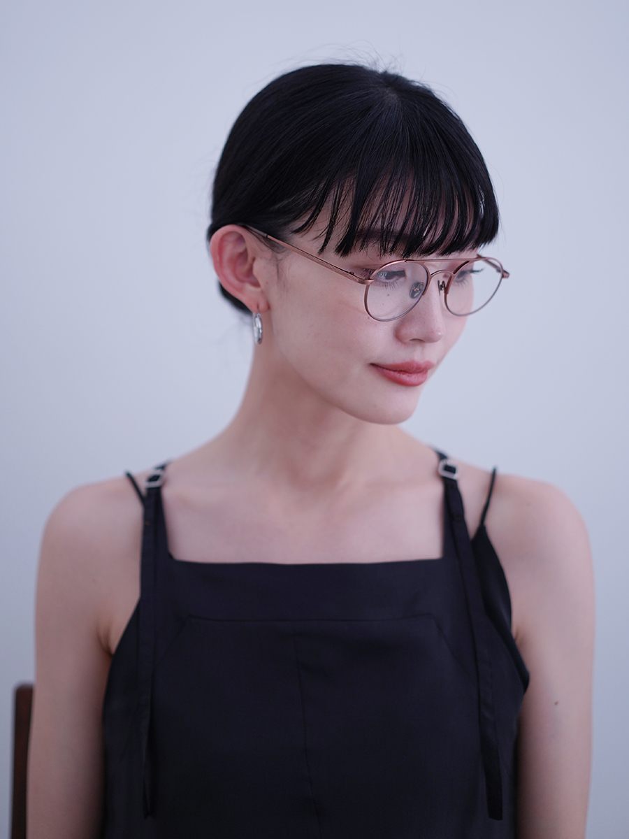 丸みがありつつも上の部分が台形を描いているタイプで、メタルのリムが細くデザインされているて、非常に付けやすいモデルかと思います。