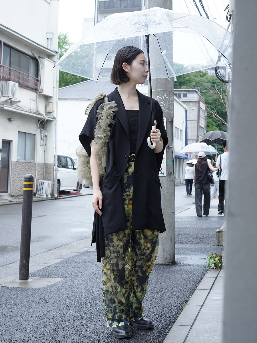 入荷して早速、AKIRANAKAのフリンジパンツと合わせたスタイリングで出勤。