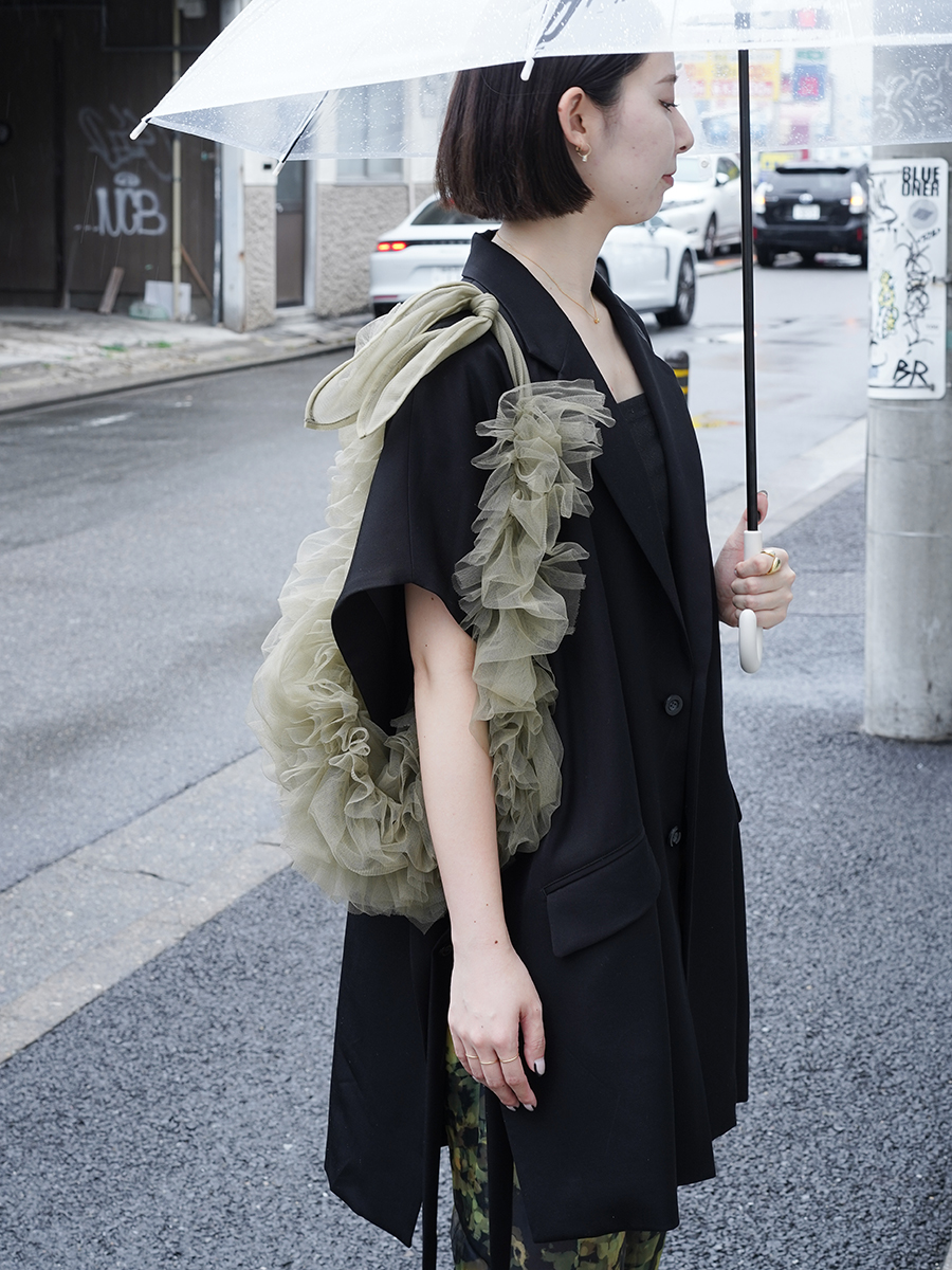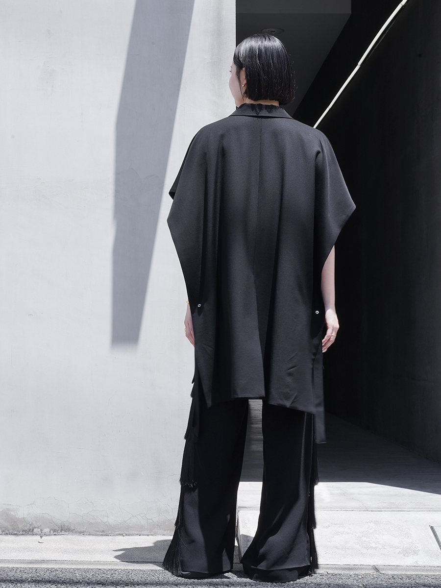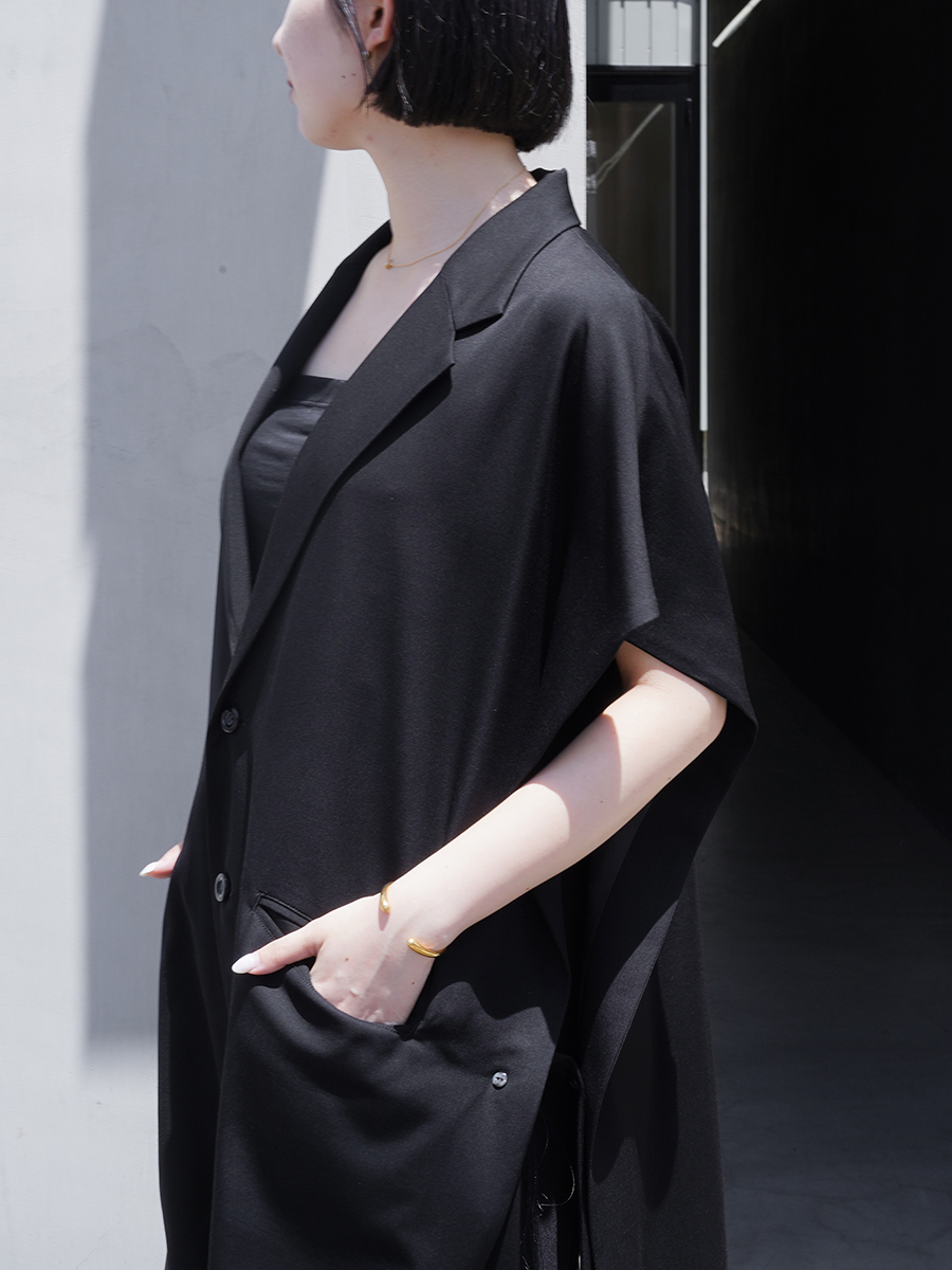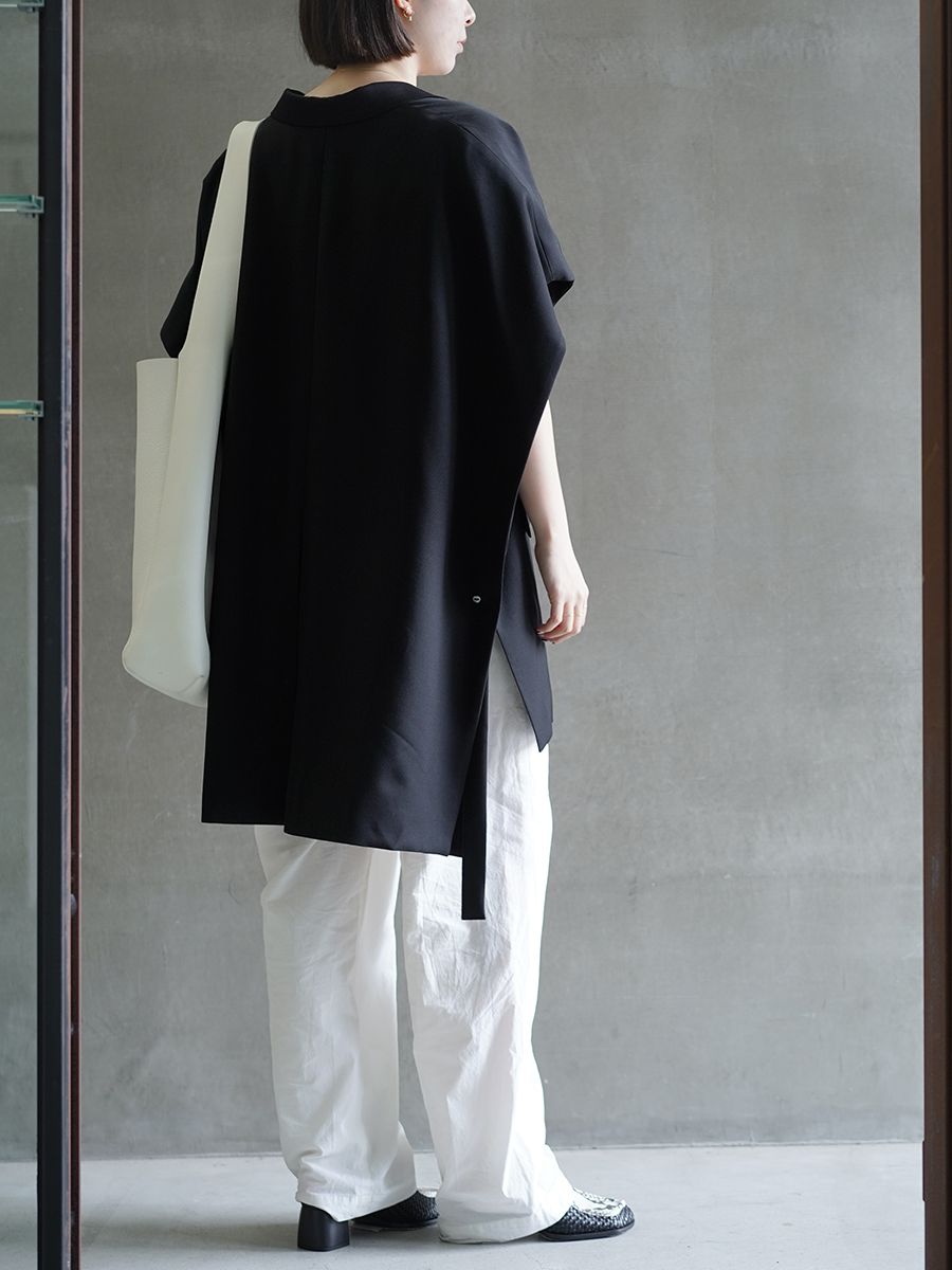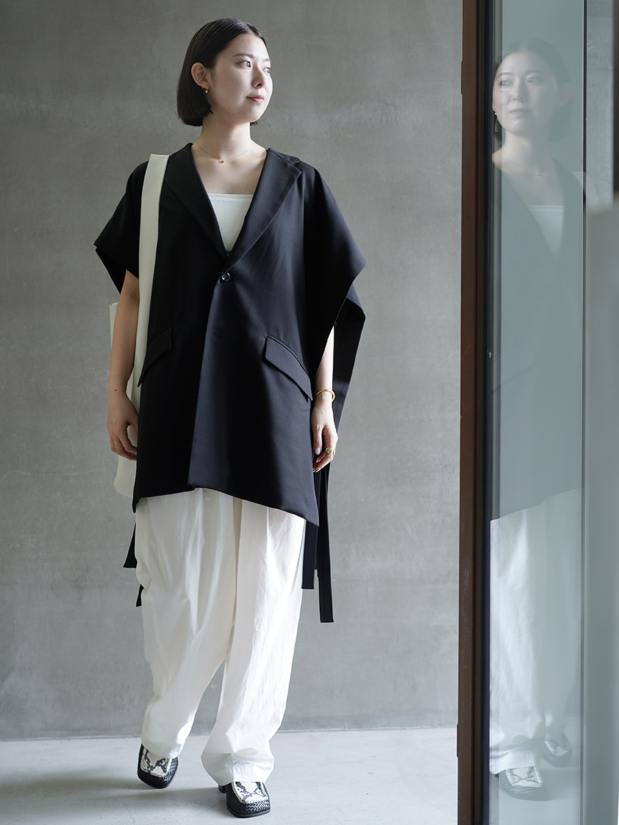 オーバーなサイズ感ですが、サイドが抜けている分体のラインを拾いすぎず、すっきりとした印象を与えてくれます。