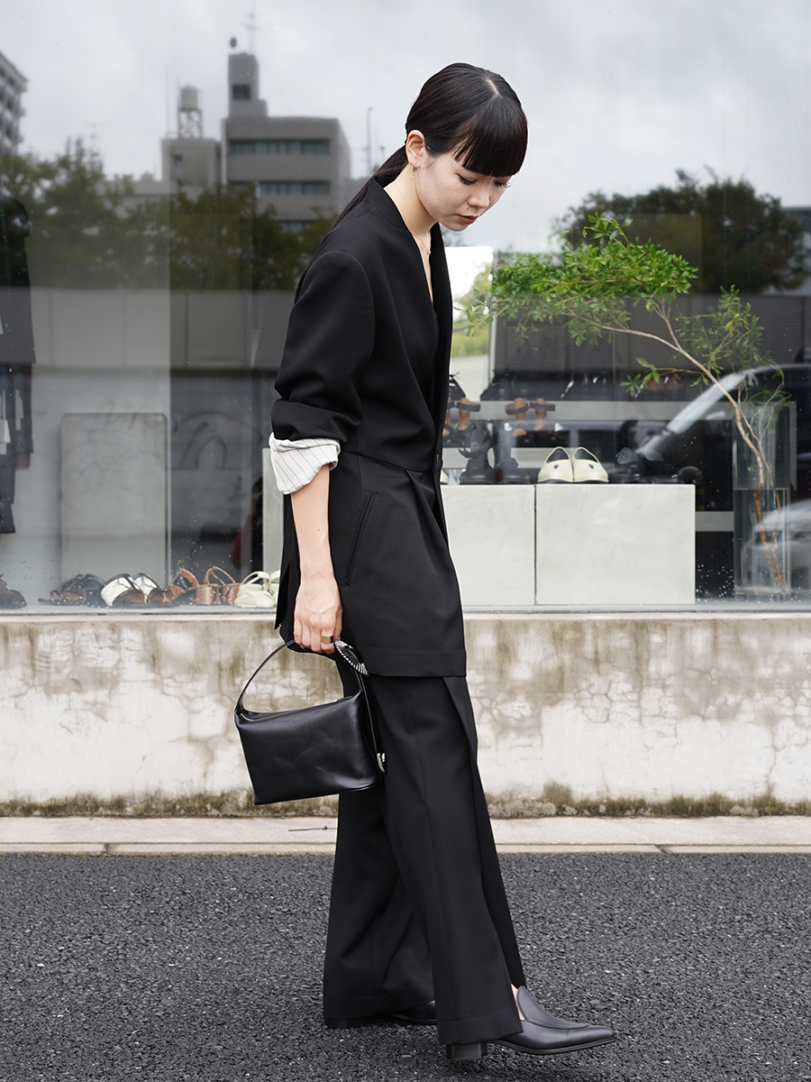 直線的なシルエットのパンツとの組み合わせ、すごく良い。