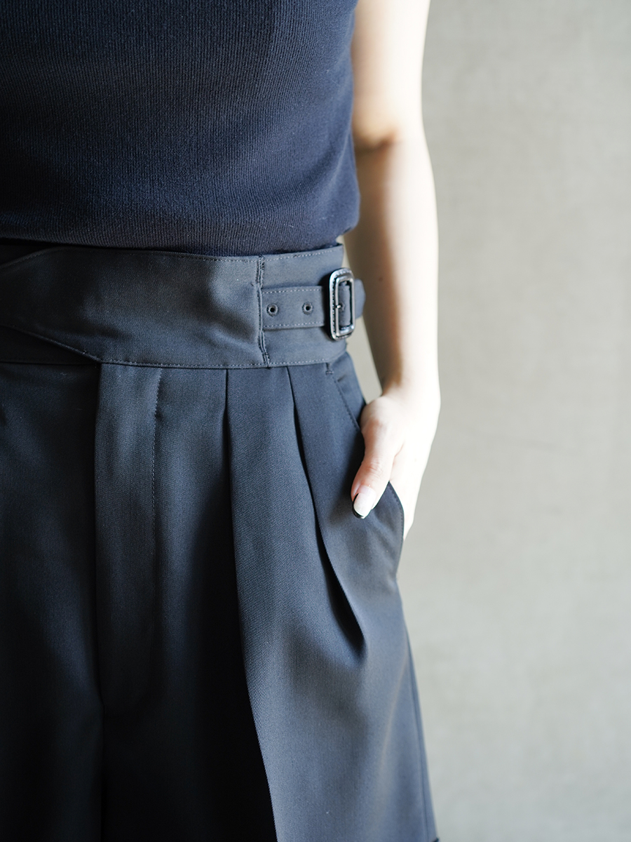さらにウエストから深いタックが入ることによって立体感が生まれ、裾幅が広くなり前後左右に程よいボリューム感を与えてくれるんです。