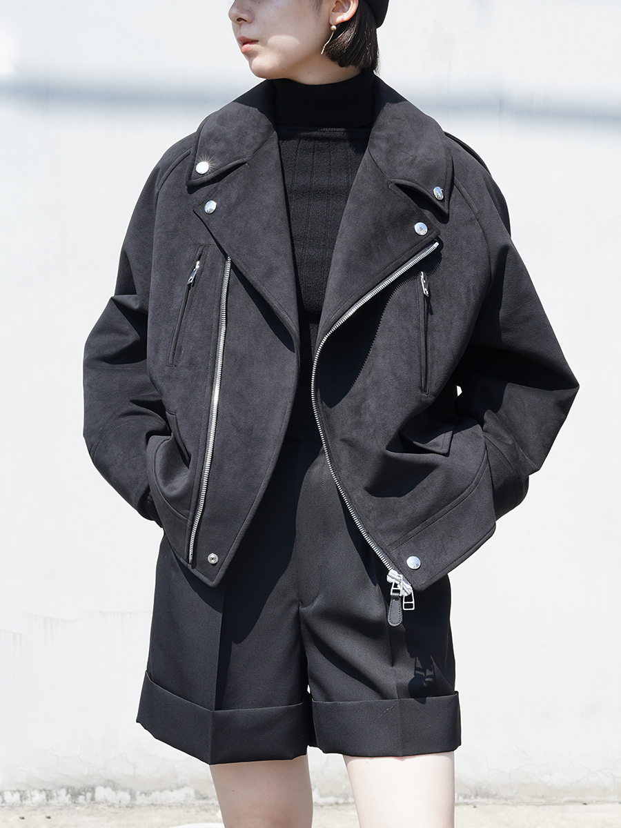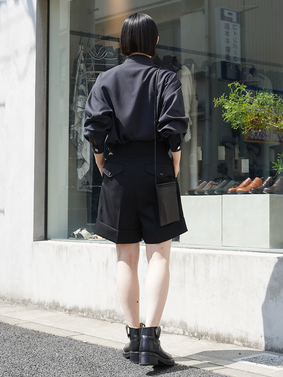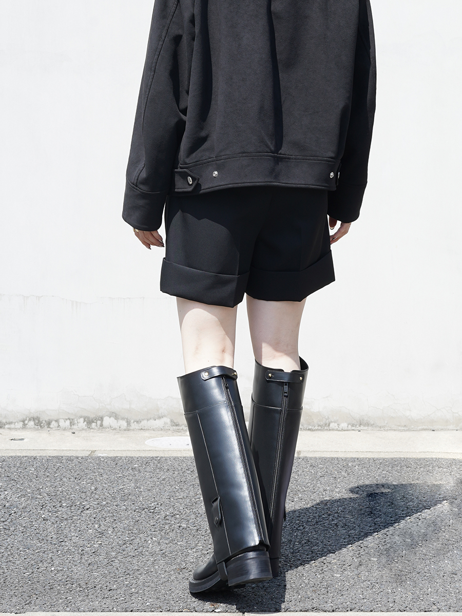 ショート丈だからこそ、フラットなシューズのみならずロングブーツなど様々なシルエットで足元を楽しんでいただけます。