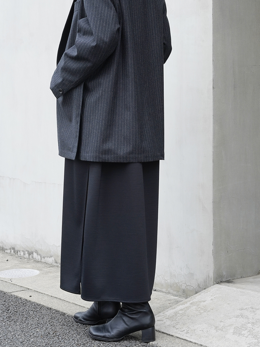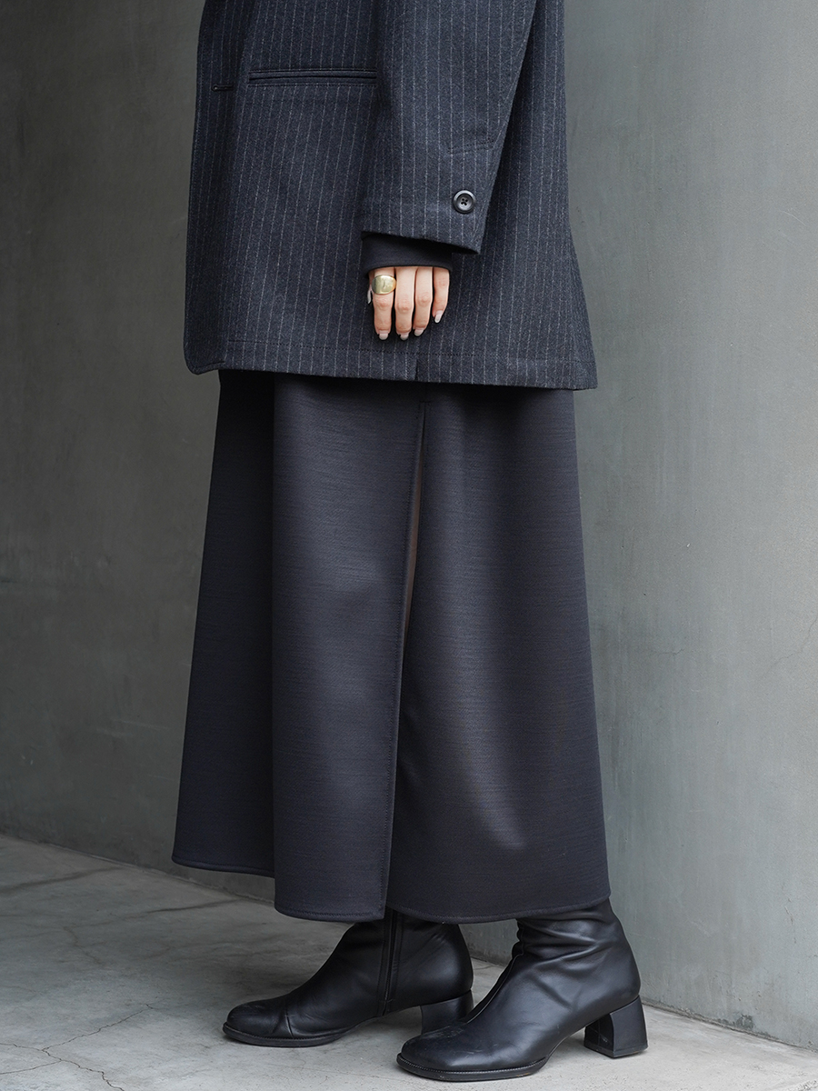 歩く姿も美しく引き立ててくれるシルエットで、ショートブーツやローファーなどに合わせてカラータイツなど、足元のスタイリングによって様々な雰囲気をお楽しみいただけます。