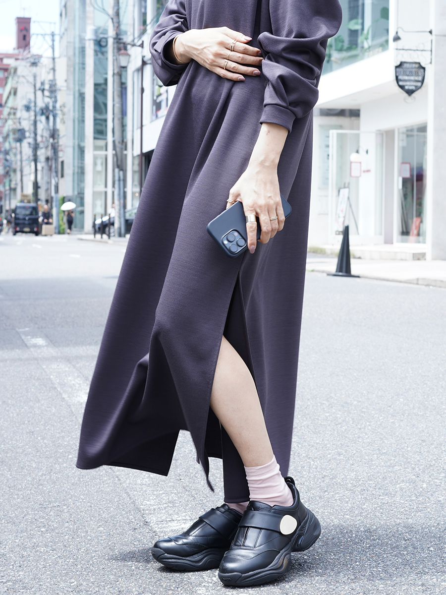 スカートのサイドにはスリットが入っていてラフな雰囲気にも。
