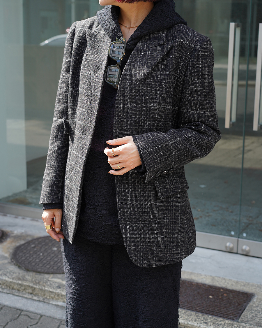 粗めのウール×リネンの素材感からは想像がつかない、ふわっとした着心地に一瞬戸惑うほどです。