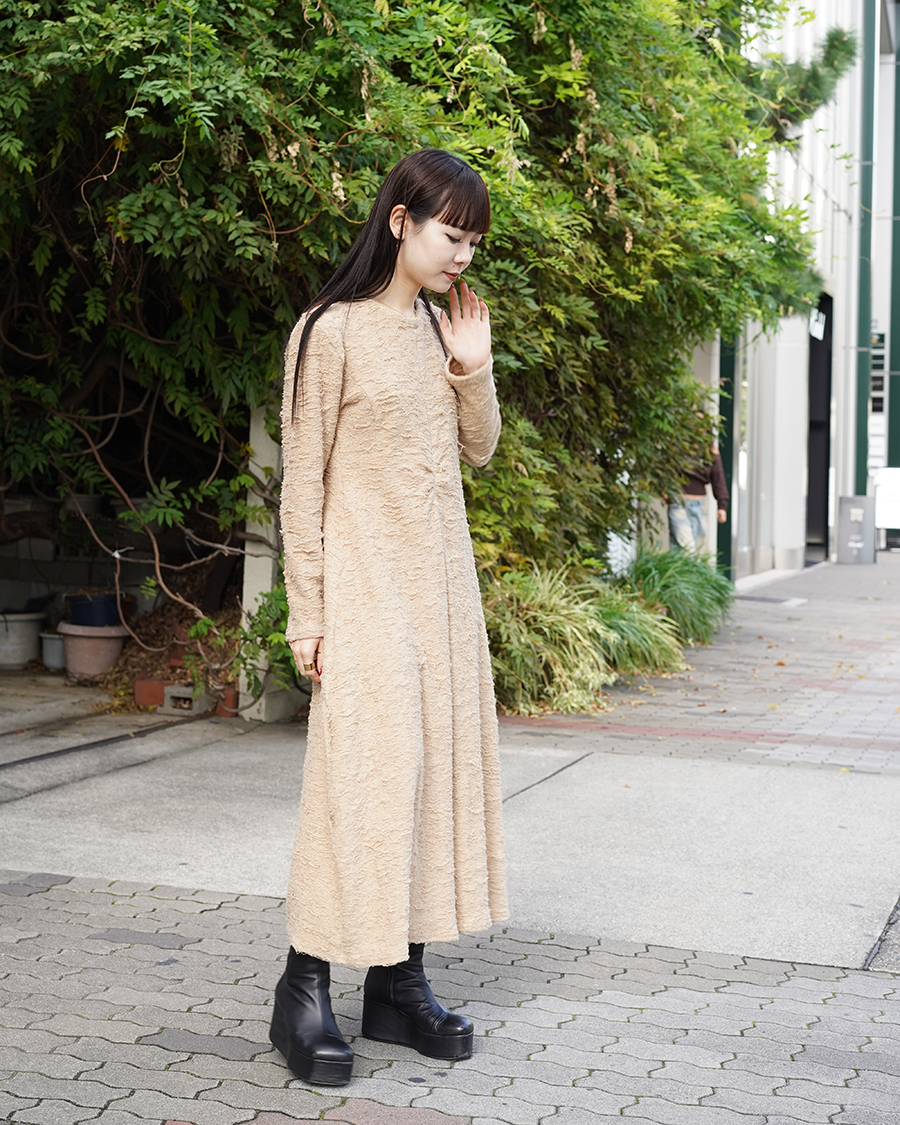 先ほどのフーディーはブラックのみの取り扱いですが、ドレスは断然キャメル推しです。