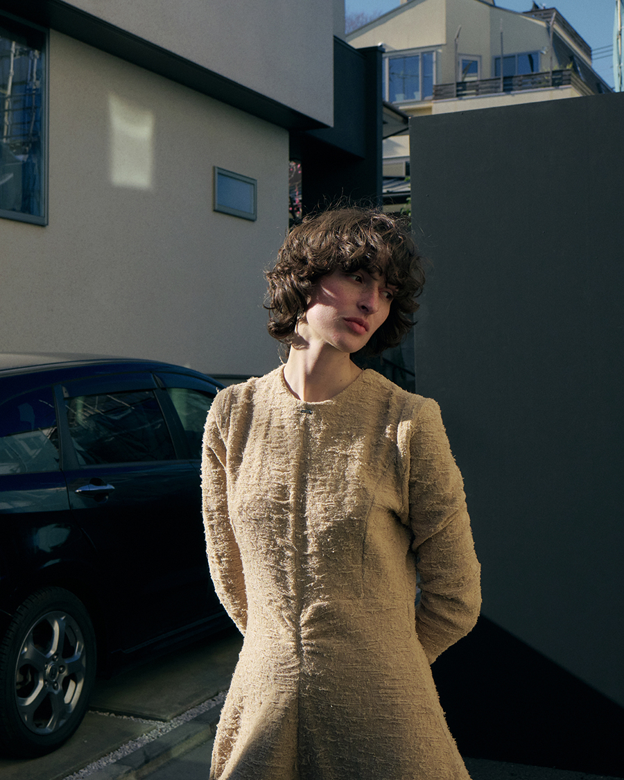 着ると肩が少しパフショルダーになっていてシルエットが可愛らしい一着。