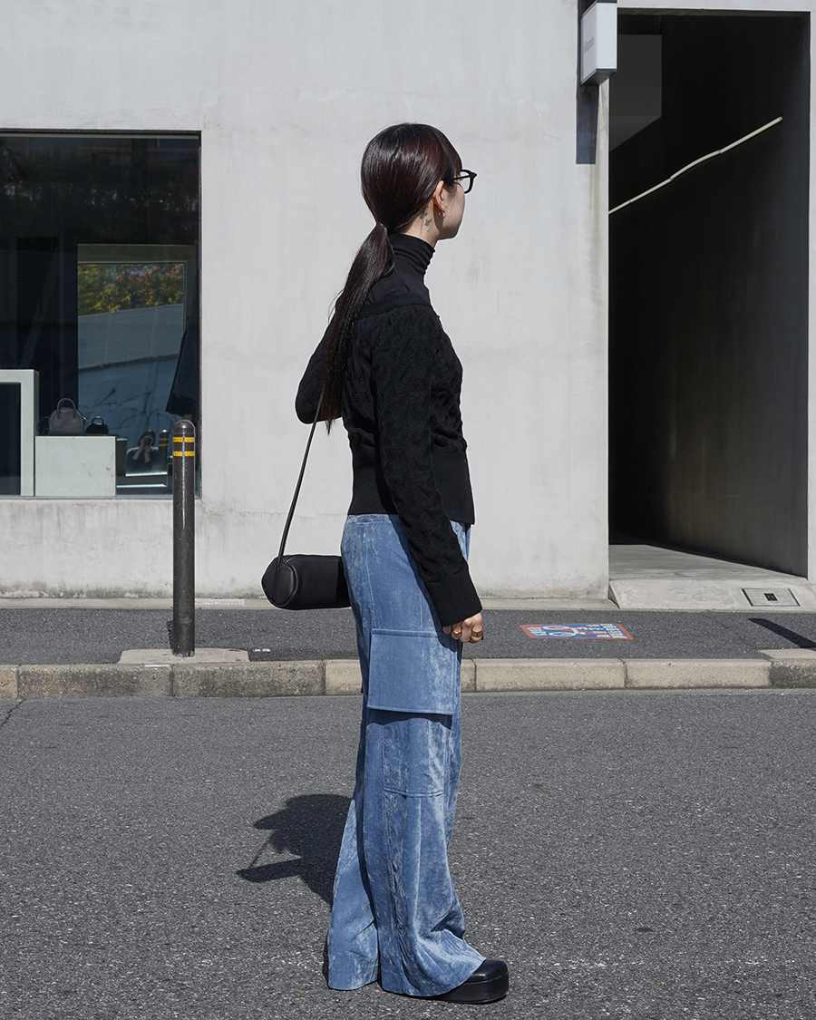 コンパクトなシルエットで着丈や身幅のバランスがすごく良くて、オフショルダーのデザインを活かしつつも、だらっと見えない仕上がりになっています。