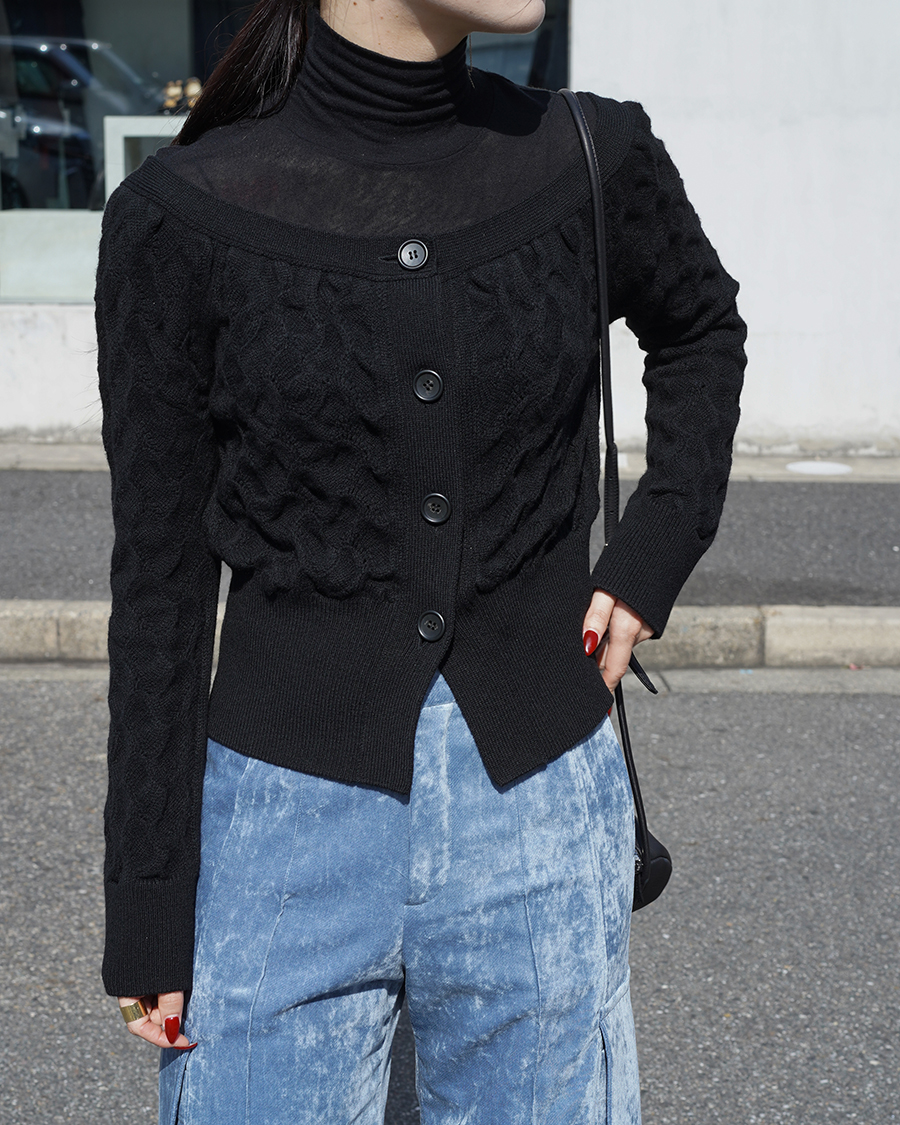 素材と編みの掛け合わせが特別で素敵な一枚。