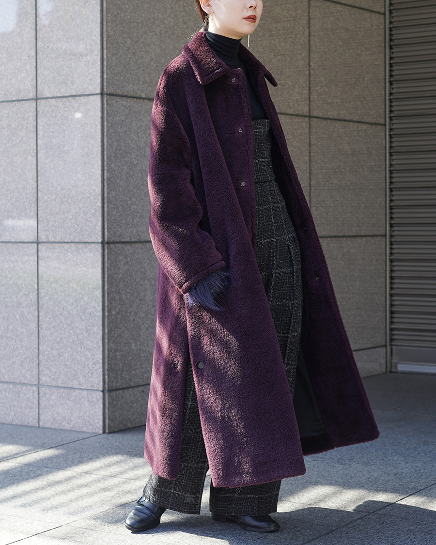 【THE RERACS】軽さと暖かさを兼ね備えた上質素材のボアロングコート。