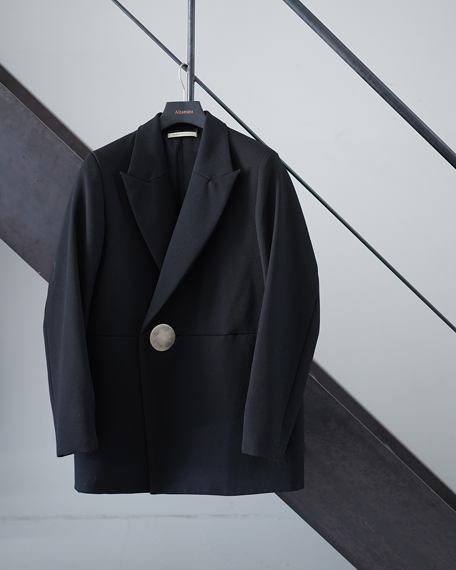 ハンサムな雰囲気でハルノブムラタらしいプレートボタンが印象的で目を惹く一着です。