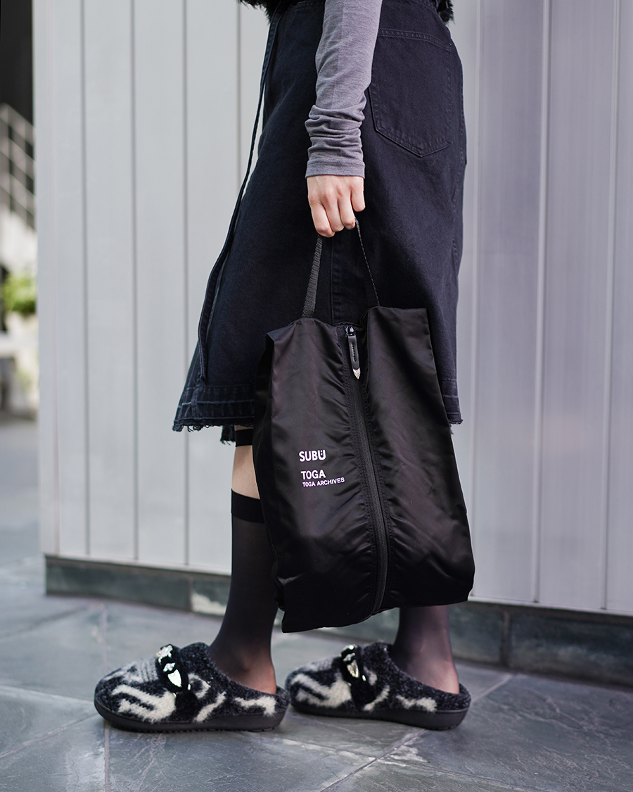 そんな独特のシルエットと履き心地の良さはそのままに、そこへTOGAならではのエッジの効いたデザインが落とし込まれた今回のコラボレーションはまさに、SUBUとTOGAのいいところだけを合わせたような、特別な一足です。