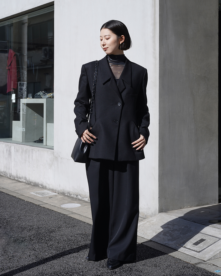 出勤時のジャケットパンツスタイルにもすごく相性が良く、洗練された余裕のある印象を与えてくれます。