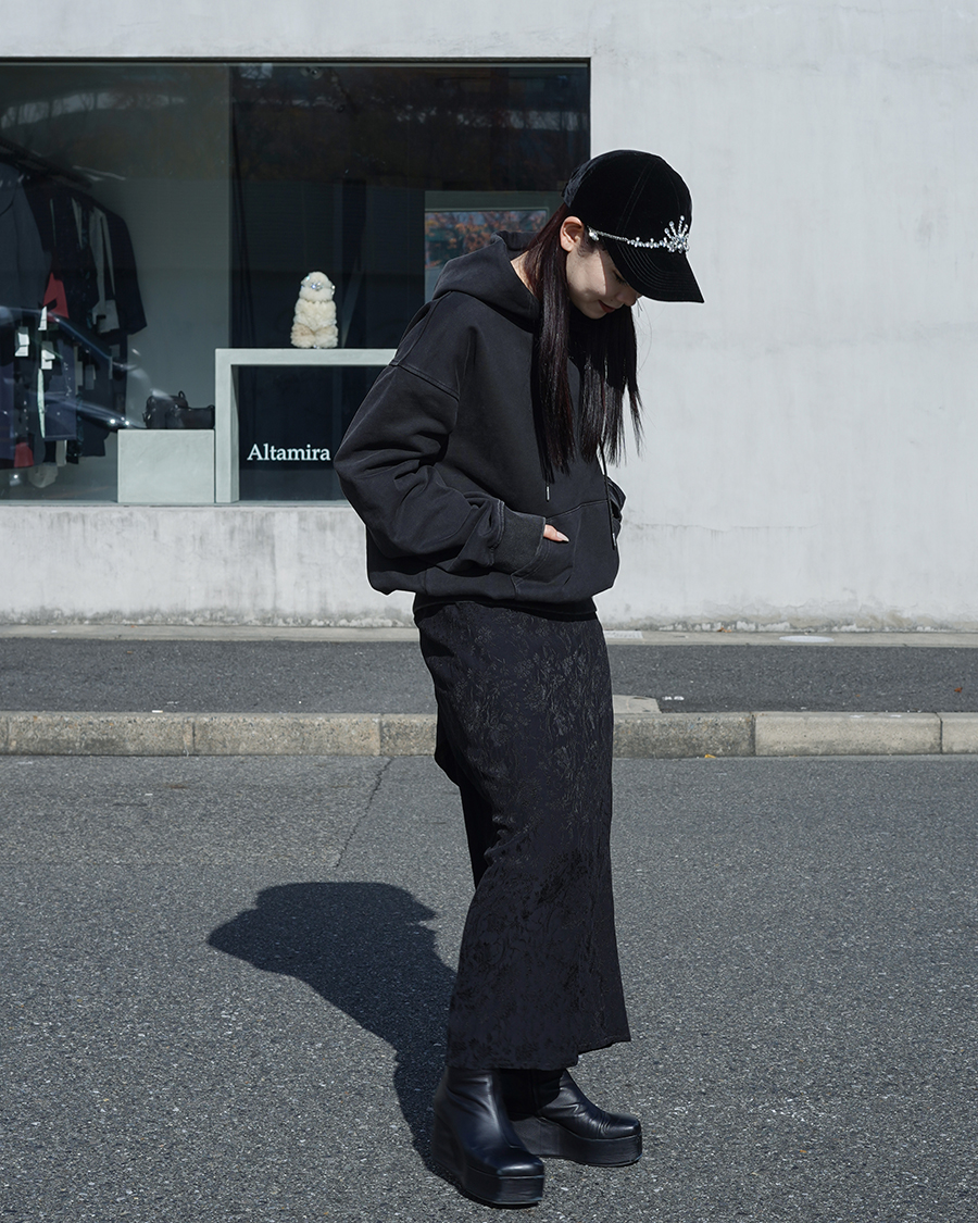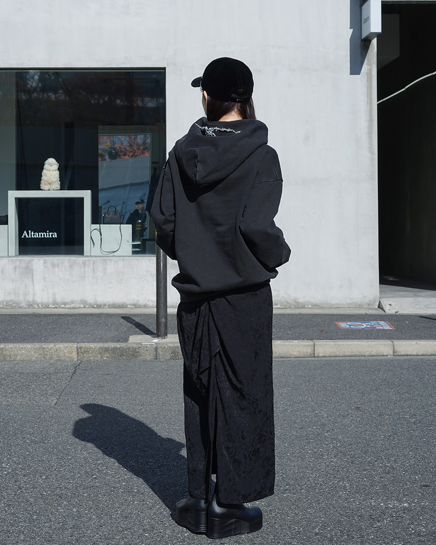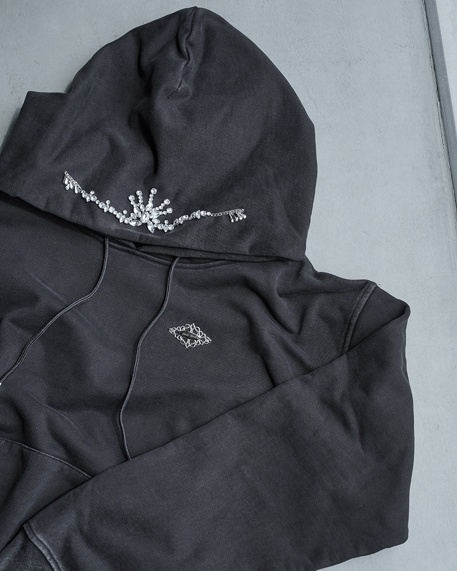 フーディを被ったときのティアラモチーフが少しときめかせてくれるタナカダイスケらしい一着。