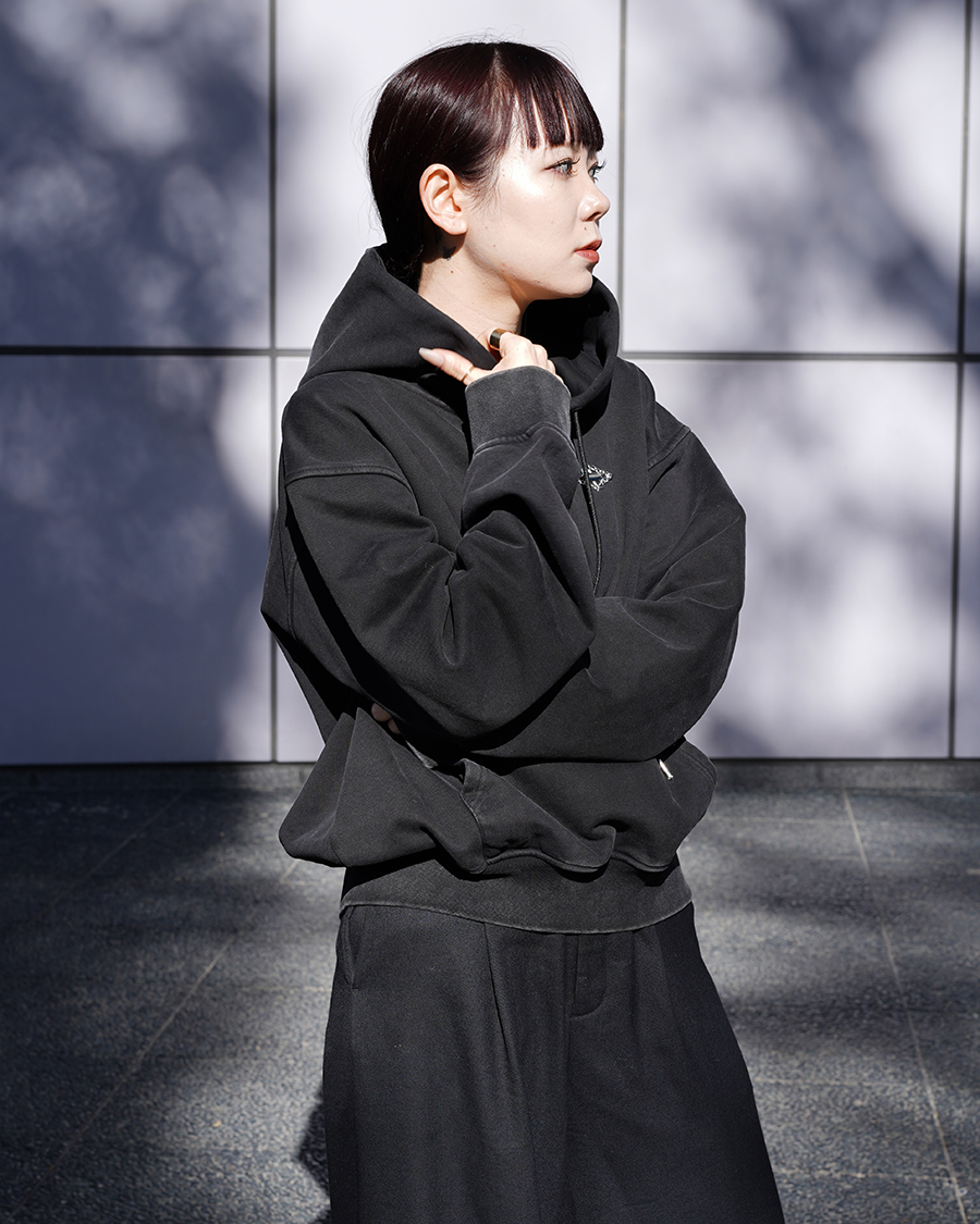 自立する感じのしっかりとした素材感のフーディってかっこいいですよね〜