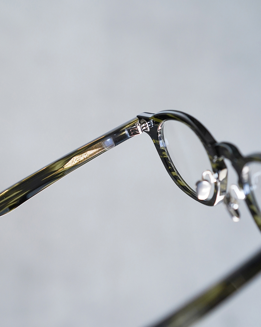 本体には、艶のあるセルロイド素材を使用し、上品で高級感のあるフレームに仕上がっています。