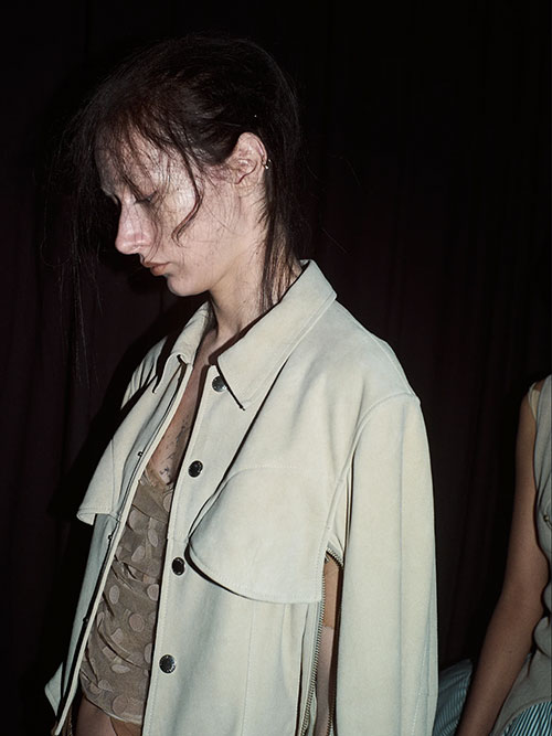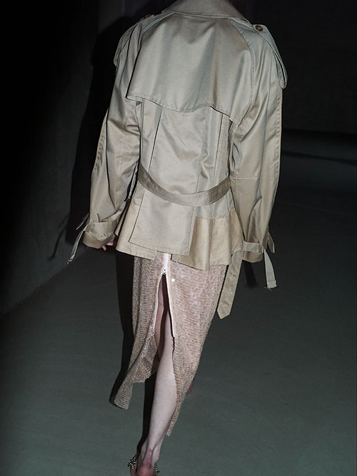 ブランドが思う、“理想の身体の形”を追求しながらデザインされた今回のコレクションは、異なる素材の重なりや、輪郭から生まれる“形”に注目されたルックが印象的でした。
