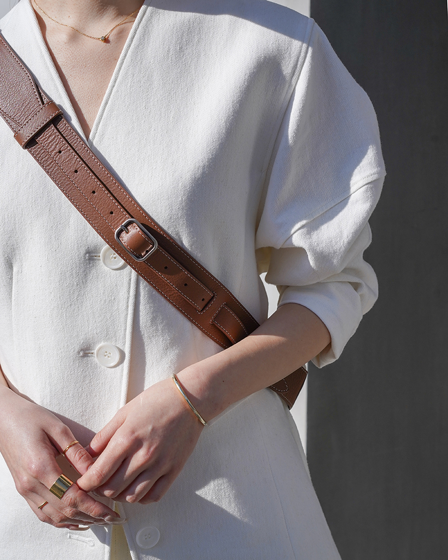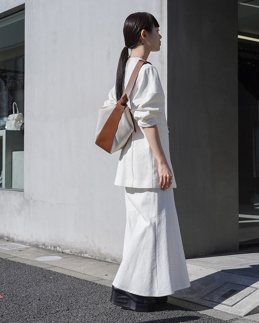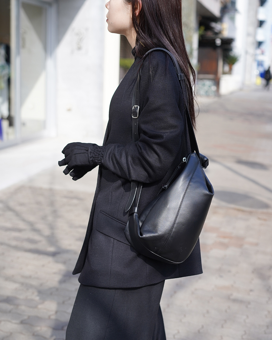 SAGANのバッグに出会ってからは上品に女性らしさを失わずに自分の普段のスタイルに自然に馴染んでくれるんです。
