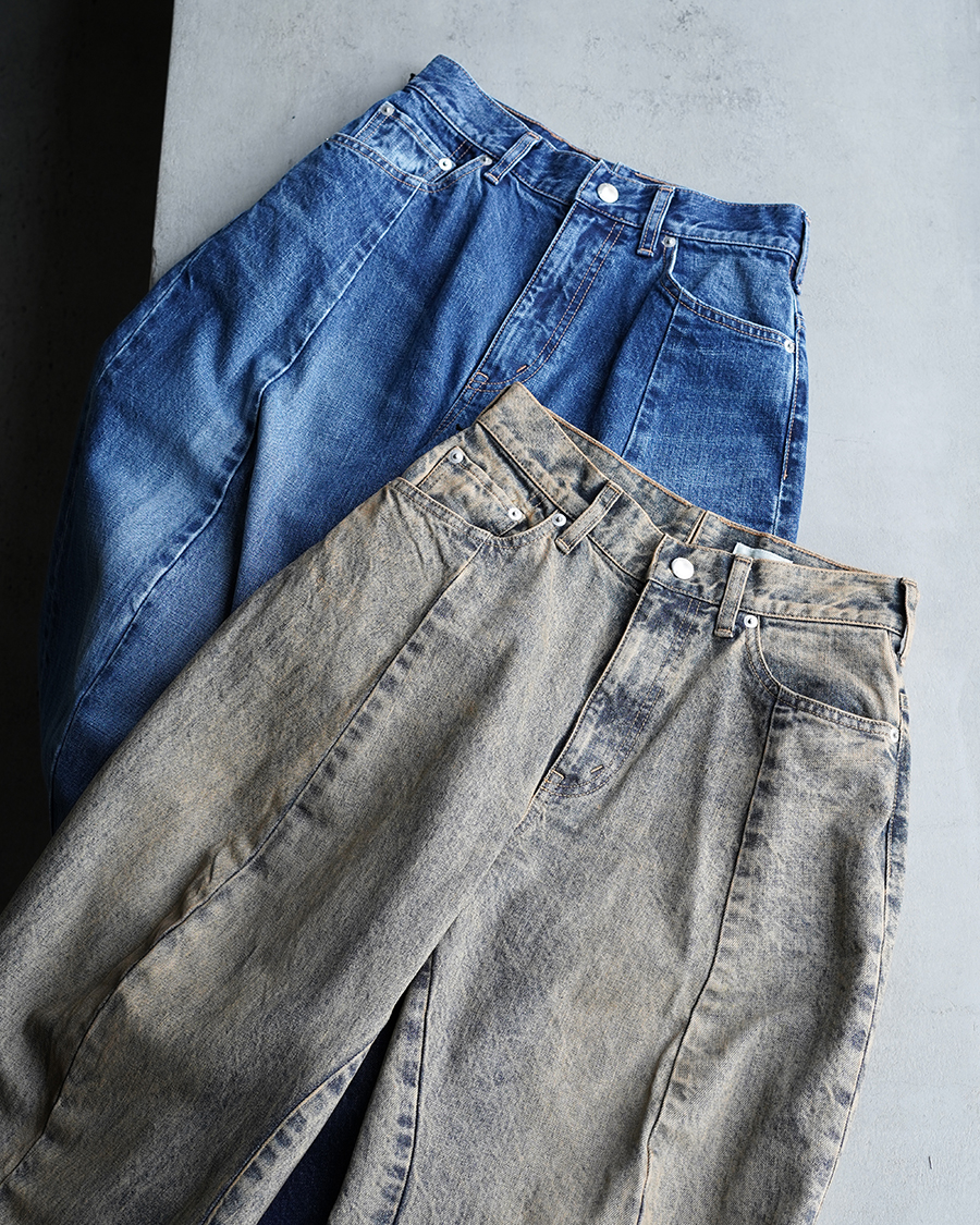 立体的になる特徴的なシルエットでとにかく履いてみて欲しいパンツです。