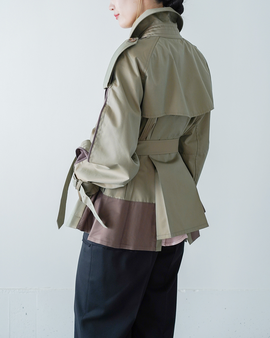 ショート丈で、ふんわりと広がるシルエットが印象的なトレンチコート。