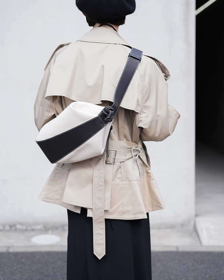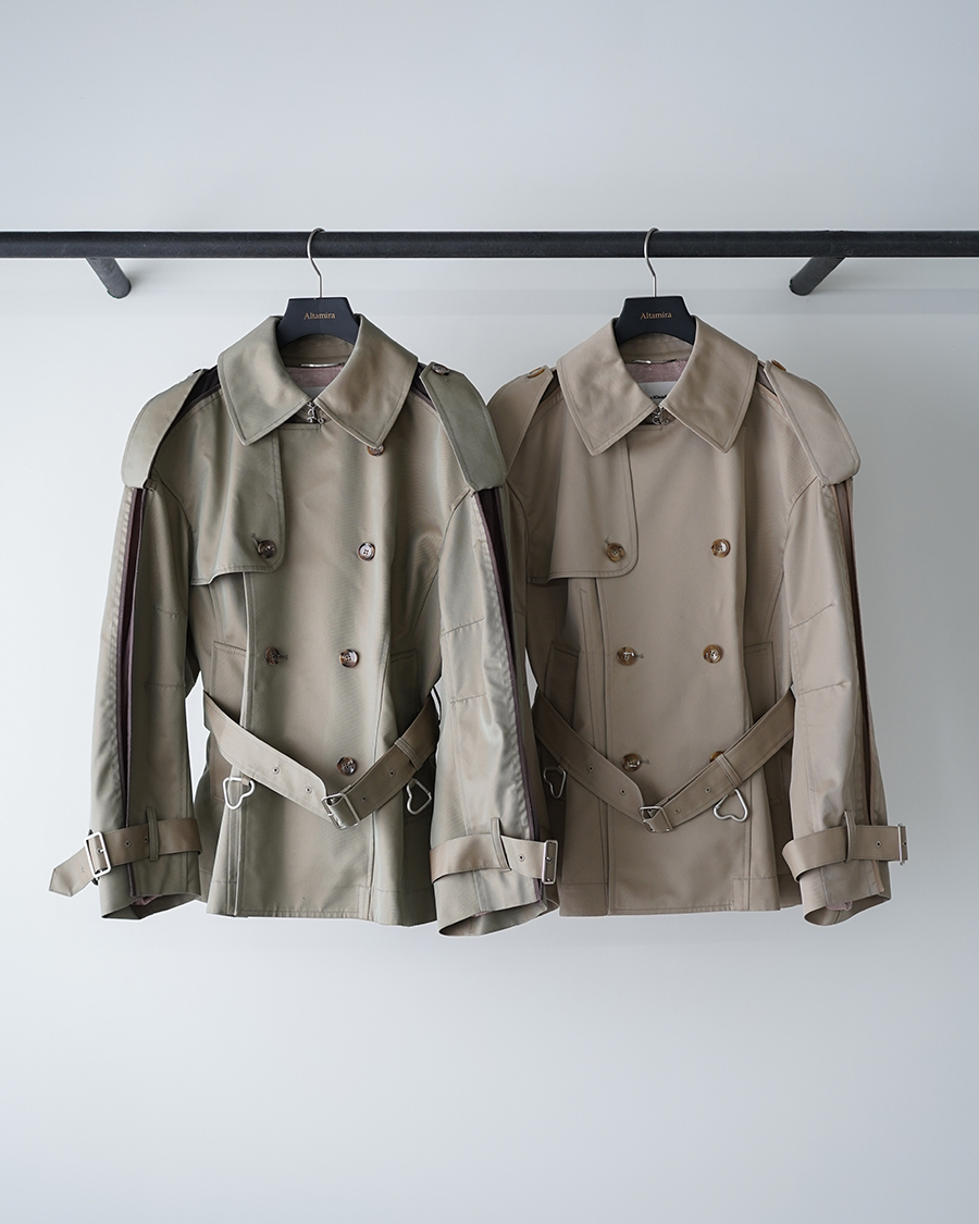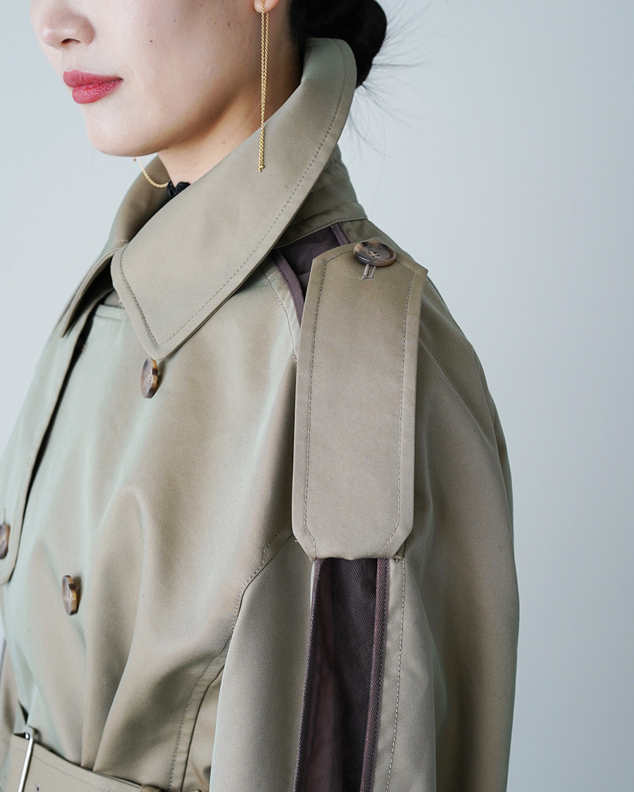 そこに大きなエポーレットや袖ベルトといった、トレンチコートらしいディテールが重なることで、