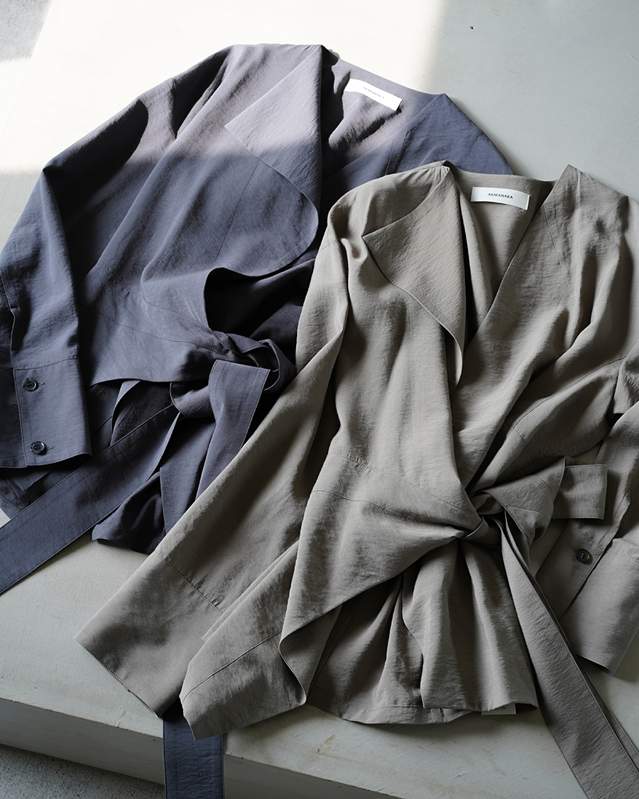 【AKIRANAKA】”結ぶ”ディテールのカシュクールジャケット