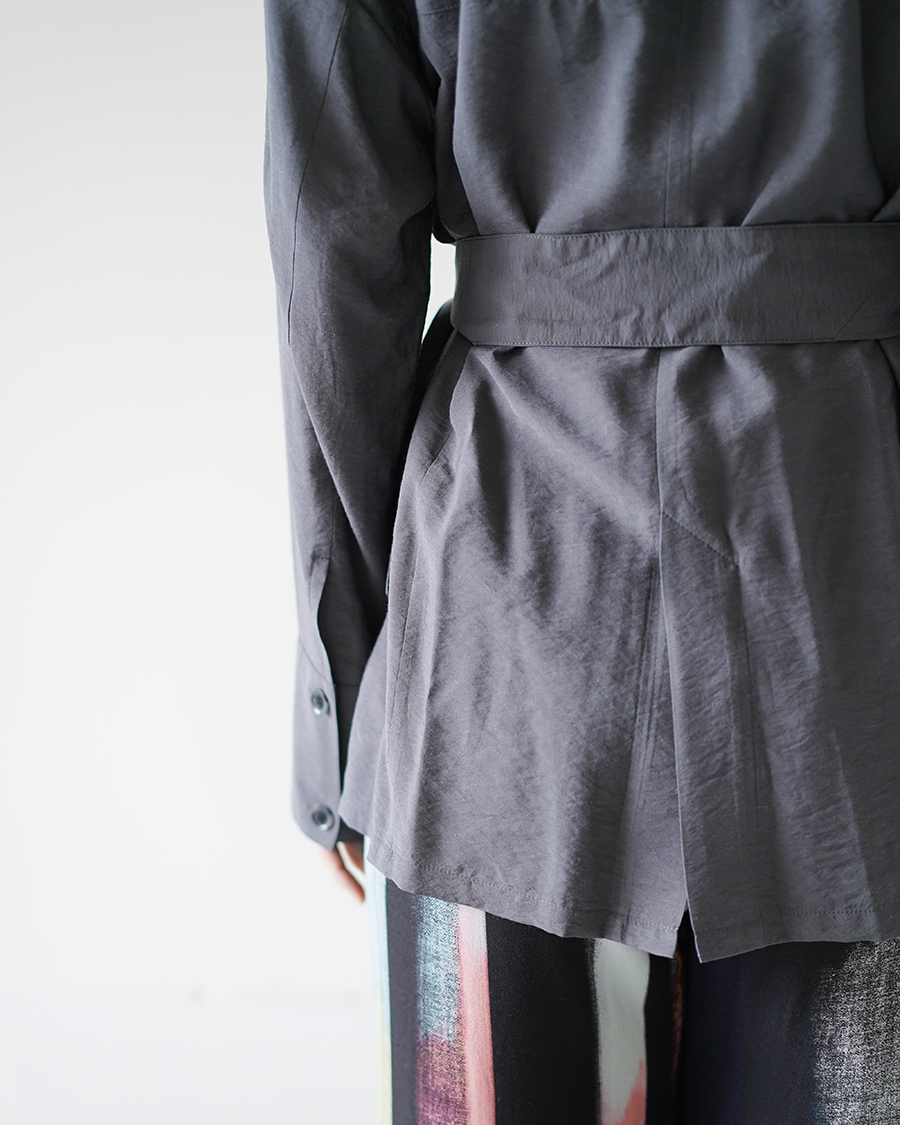 ボトムスに合わせてベルトの縛り具合を変えて楽しめる一着です。